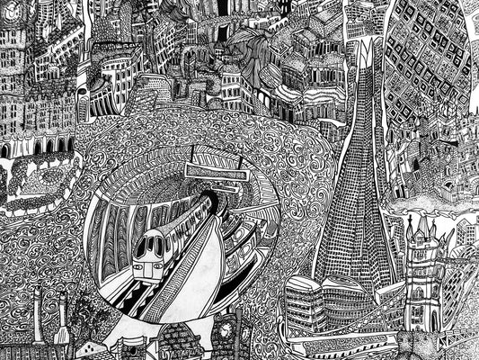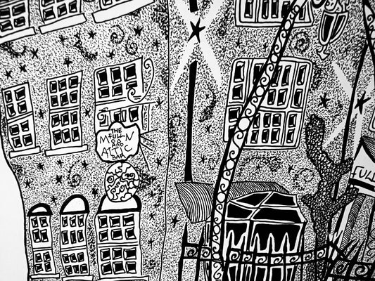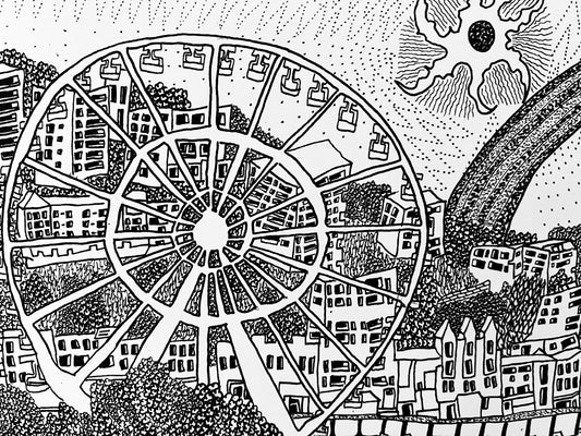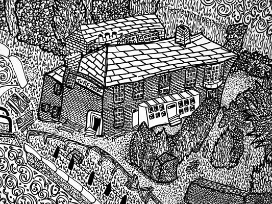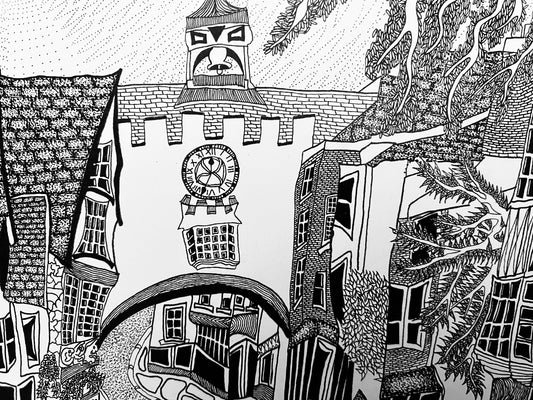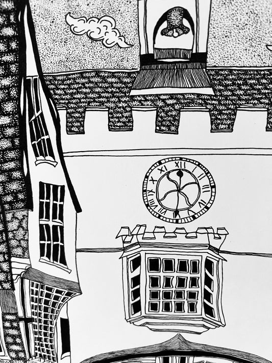 I started this style of drawing at the end of 2019 while I was staying in the french countryside of Aveyron. I decided to draw the house I was staying in and spent lots of details on the stonework, roof and other features. A lady from the local tabac said she liked my artwork and I got my first commission to draw her house. I carried on drawing while staying in my aunties attic, which has a view of the sea in Teignmouth, a lovely space for drawing. I moved to Totnes, which inspired me to go even more down the wonky style because of the local buildings and streets. Now the next step of my journey, is to keep drawing different city's, towns and villages, while filming them and uploading time lapses on social media.